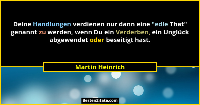 Deine Handlungen verdienen nur dann eine "edle That" genannt zu werden, wenn Du ein Verderben, ein Unglück abgewendet oder beseitigt hast.