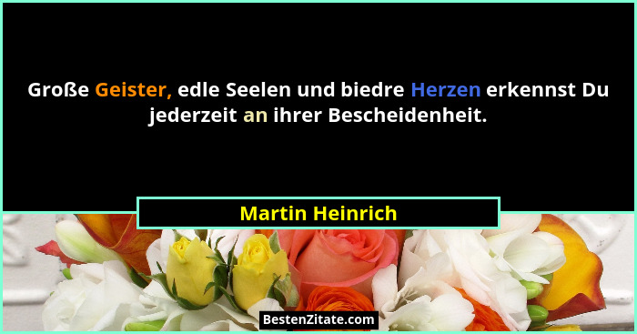 Große Geister, edle Seelen und biedre Herzen erkennst Du jederzeit an ihrer Bescheidenheit.