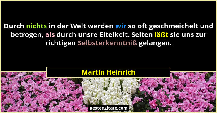 Durch nichts in der Welt werden wir so oft geschmeichelt und betrogen, als durch unsre Eitelkeit. Selten läßt sie uns zur richtigen Selbsterkenntniß gelangen.