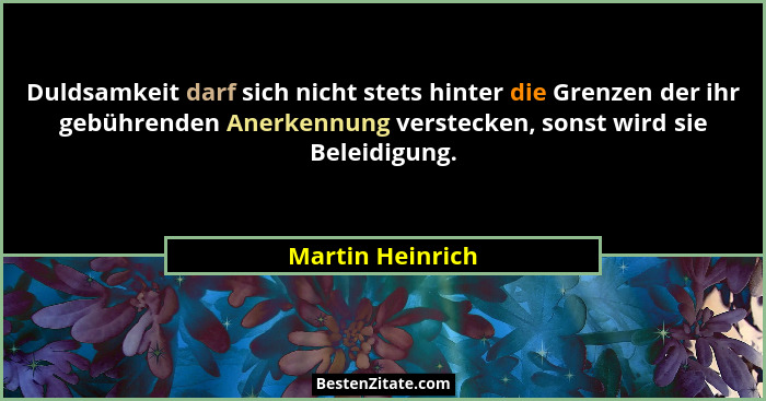 Duldsamkeit darf sich nicht stets hinter die Grenzen der ihr gebührenden Anerkennung verstecken, sonst wird sie Beleidigung.