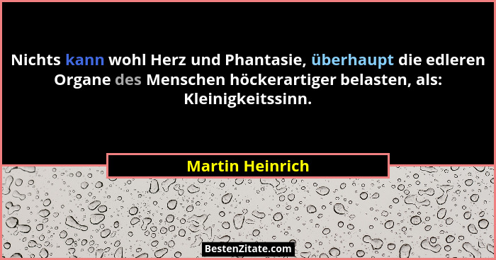 Nichts kann wohl Herz und Phantasie, überhaupt die edleren Organe des Menschen höckerartiger belasten, als: Kleinigkeitssinn.