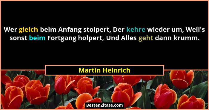 Wer gleich beim Anfang stolpert, Der kehre wieder um, Weil's sonst beim Fortgang holpert, Und Alles geht dann krumm.