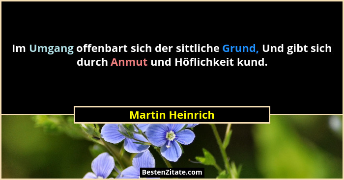 Im Umgang offenbart sich der sittliche Grund, Und gibt sich durch Anmut und Höflichkeit kund.