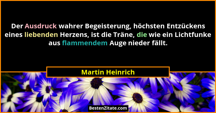 Der Ausdruck wahrer Begeisterung, höchsten Entzückens eines liebenden Herzens, ist die Träne, die wie ein Lichtfunke aus flammendem Auge nieder fällt.