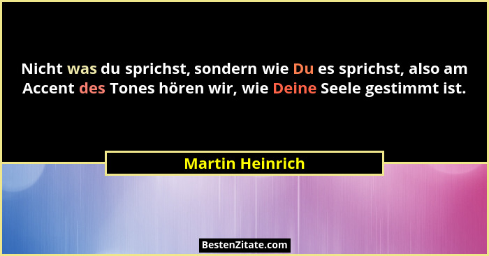 Nicht was du sprichst, sondern wie Du es sprichst, also am Accent des Tones hören wir, wie Deine Seele gestimmt ist.