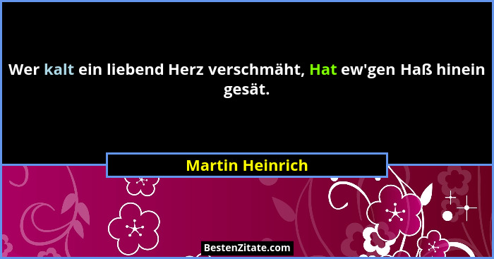 Wer kalt ein liebend Herz verschmäht, Hat ew'gen Haß hinein gesät.