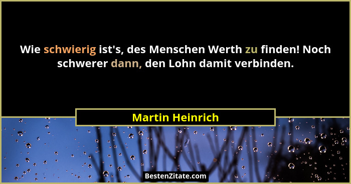 Wie schwierig ist's, des Menschen Werth zu finden! Noch schwerer dann, den Lohn damit verbinden.