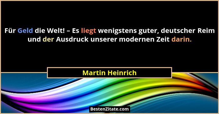Für Geld die Welt! – Es liegt wenigstens guter, deutscher Reim und der Ausdruck unserer modernen Zeit darin.