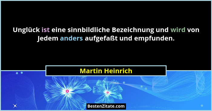 Unglück ist eine sinnbildliche Bezeichnung und wird von Jedem anders aufgefaßt und empfunden.