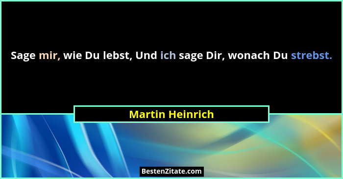 Sage mir, wie Du lebst, Und ich sage Dir, wonach Du strebst.