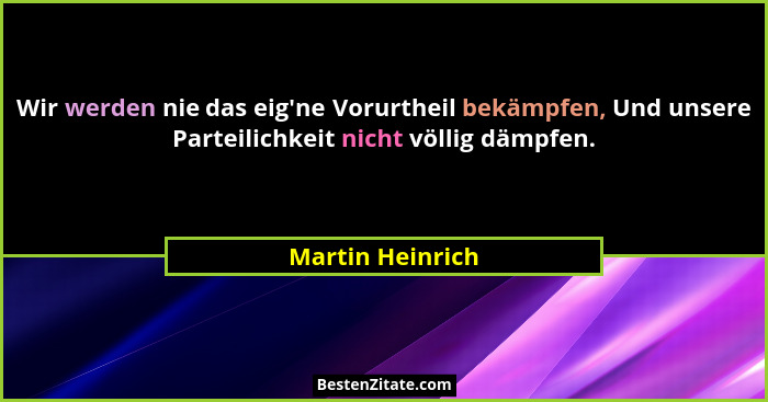 Wir werden nie das eig'ne Vorurtheil bekämpfen, Und unsere Parteilichkeit nicht völlig dämpfen.