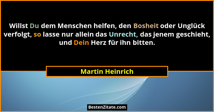Willst Du dem Menschen helfen, den Bosheit oder Unglück verfolgt, so lasse nur allein das Unrecht, das jenem geschieht, und Dein Herz für ihn bitten.