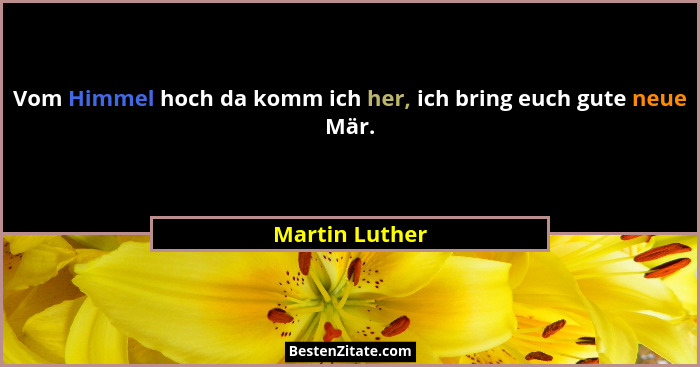Vom Himmel hoch da komm ich her, ich bring euch gute neue Mär.