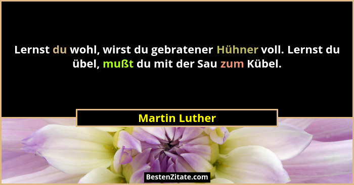 Lernst du wohl, wirst du gebratener Hühner voll. Lernst du übel, mußt du mit der Sau zum Kübel.