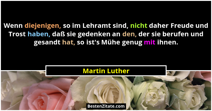 Wenn diejenigen, so im Lehramt sind, nicht daher Freude und Trost haben, daß sie gedenken an den, der sie berufen und gesandt hat, so ist's Mühe genug mit ihnen.