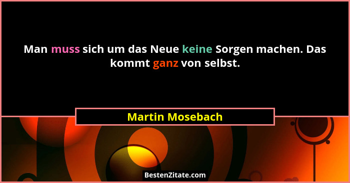 Man muss sich um das Neue keine Sorgen machen. Das kommt ganz von selbst.