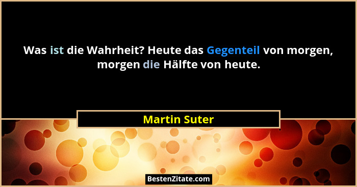 Was ist die Wahrheit? Heute das Gegenteil von morgen, morgen die Hälfte von heute.