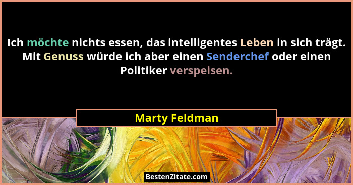 Ich möchte nichts essen, das intelligentes Leben in sich trägt. Mit Genuss würde ich aber einen Senderchef oder einen Politiker verspeisen.