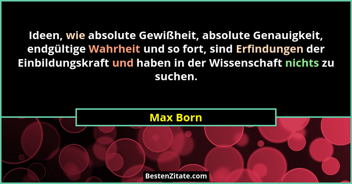 Ideen, wie absolute Gewißheit, absolute Genauigkeit, endgültige Wahrheit und so fort, sind Erfindungen der Einbildungskraft und haben in der Wissenschaft nichts zu suchen.