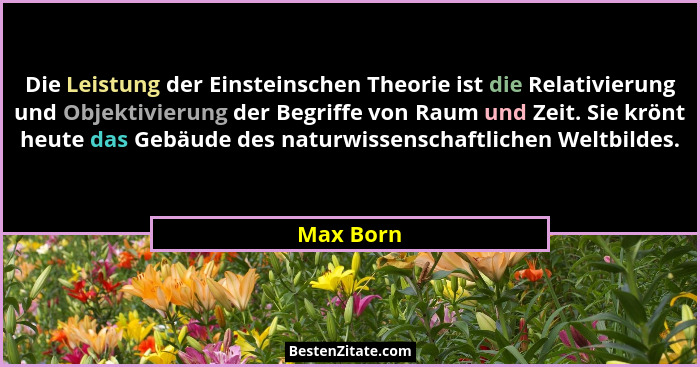 Die Leistung der Einsteinschen Theorie ist die Relativierung und Objektivierung der Begriffe von Raum und Zeit. Sie krönt heute das Gebäude des naturwissenschaftlichen Weltbildes.
