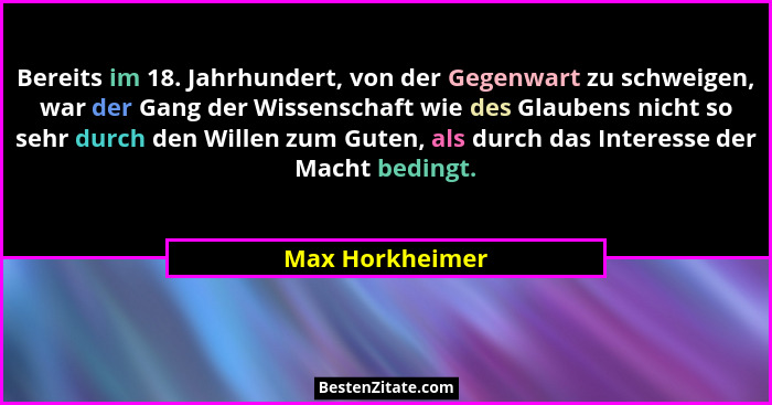 Bereits im 18. Jahrhundert, von der Gegenwart zu schweigen, war der Gang der Wissenschaft wie des Glaubens nicht so sehr durch den Willen zum Guten, als durch das Interesse der Macht bedingt.