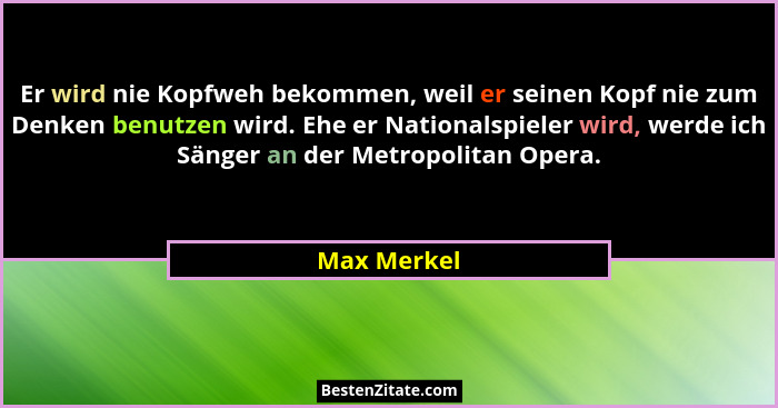Er wird nie Kopfweh bekommen, weil er seinen Kopf nie zum Denken benutzen wird. Ehe er Nationalspieler wird, werde ich Sänger an der Metropolitan Opera.