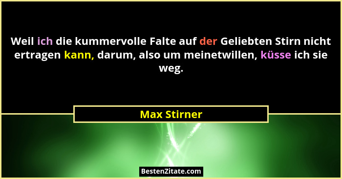 Weil ich die kummervolle Falte auf der Geliebten Stirn nicht ertragen kann, darum, also um meinetwillen, küsse ich sie weg.