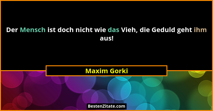 Der Mensch ist doch nicht wie das Vieh, die Geduld geht ihm aus!