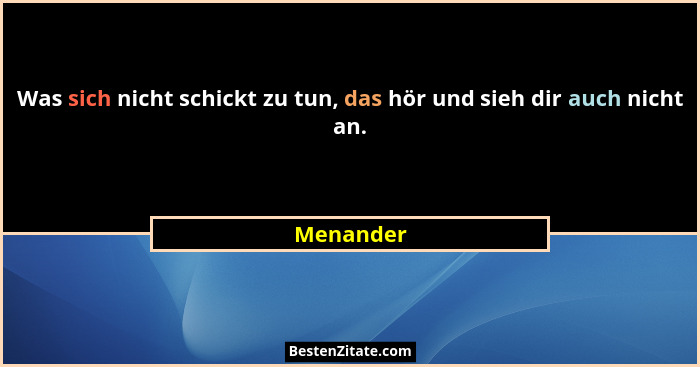 Was sich nicht schickt zu tun, das hör und sieh dir auch nicht an.