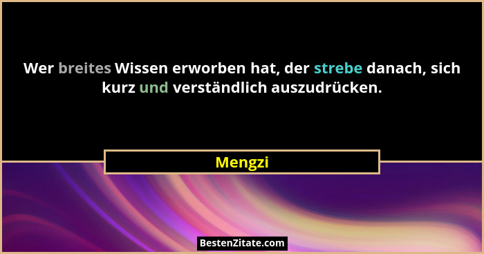 Wer breites Wissen erworben hat, der strebe danach, sich kurz und verständlich auszudrücken.