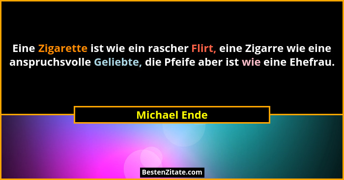 Eine Zigarette ist wie ein rascher Flirt, eine Zigarre wie eine anspruchsvolle Geliebte, die Pfeife aber ist wie eine Ehefrau.