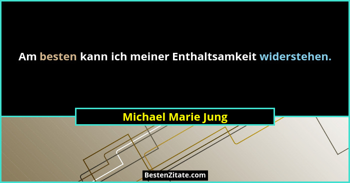 Am besten kann ich meiner Enthaltsamkeit widerstehen.