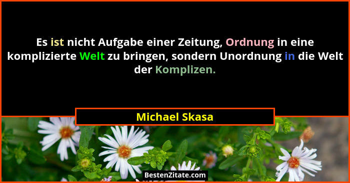 Es ist nicht Aufgabe einer Zeitung, Ordnung in eine komplizierte Welt zu bringen, sondern Unordnung in die Welt der Komplizen.