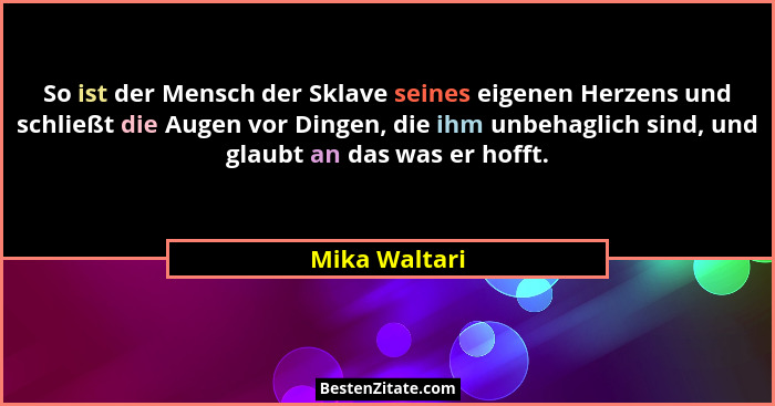 So ist der Mensch der Sklave seines eigenen Herzens und schließt die Augen vor Dingen, die ihm unbehaglich sind, und glaubt an das was er hofft.
