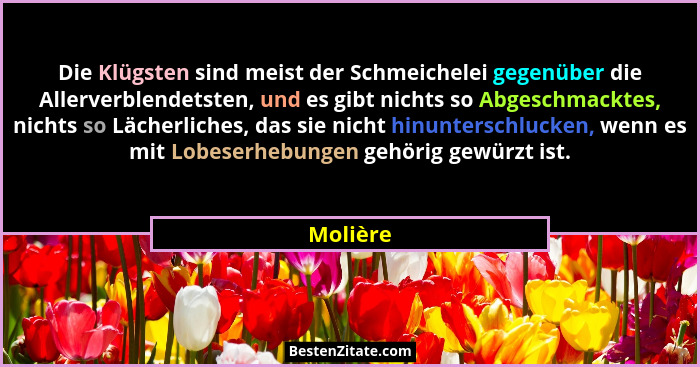 Die Klügsten sind meist der Schmeichelei gegenüber die Allerverblendetsten, und es gibt nichts so Abgeschmacktes, nichts so Lächerliches, das sie nicht hinunterschlucken, wenn es mit Lobeserhebungen gehörig gewürzt ist.