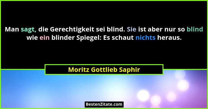 Man sagt, die Gerechtigkeit sei blind. Sie ist aber nur so blind wie ein blinder Spiegel: Es schaut nichts heraus.