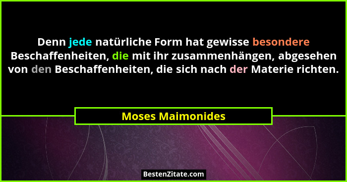 Denn jede natürliche Form hat gewisse besondere Beschaffenheiten, die mit ihr zusammenhängen, abgesehen von den Beschaffenheiten, die sich nach der Materie richten.