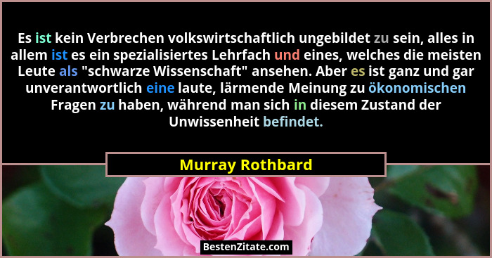 Es ist kein Verbrechen volkswirtschaftlich ungebildet zu sein, alles in allem ist es ein spezialisiertes Lehrfach und eines, welches die meisten Leute als "schwarze Wissenschaft" ansehen. Aber es ist ganz und gar unverantwortlich eine laute, lärmende Meinung zu ökonomischen Fragen zu haben, während man sich in diesem Zustand der Unwissenheit befindet.