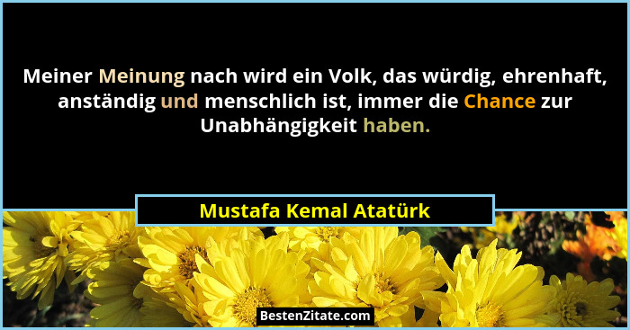 Meiner Meinung nach wird ein Volk, das würdig, ehrenhaft, anständig und menschlich ist, immer die Chance zur Unabhängigkeit haben.