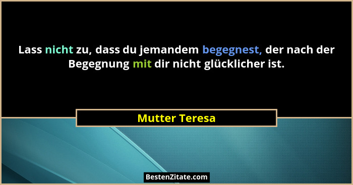 Lass nicht zu, dass du jemandem begegnest, der nach der Begegnung mit dir nicht glücklicher ist.