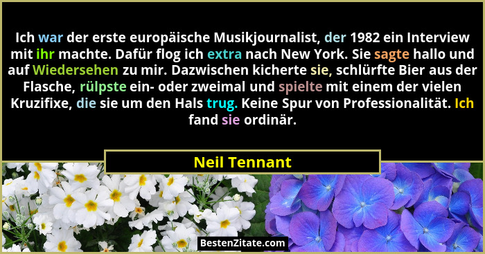 Ich war der erste europäische Musikjournalist, der 1982 ein Interview mit ihr machte. Dafür flog ich extra nach New York. Sie sagte hallo und auf Wiedersehen zu mir. Dazwischen kicherte sie, schlürfte Bier aus der Flasche, rülpste ein- oder zweimal und spielte mit einem der vielen Kruzifixe, die sie um den Hals trug. Keine Spur von Professionalität. Ich fand sie ordinär.
