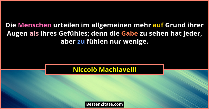Die Menschen urteilen im allgemeinen mehr auf Grund ihrer Augen als ihres Gefühles; denn die Gabe zu sehen hat jeder, aber zu fühlen nur wenige.