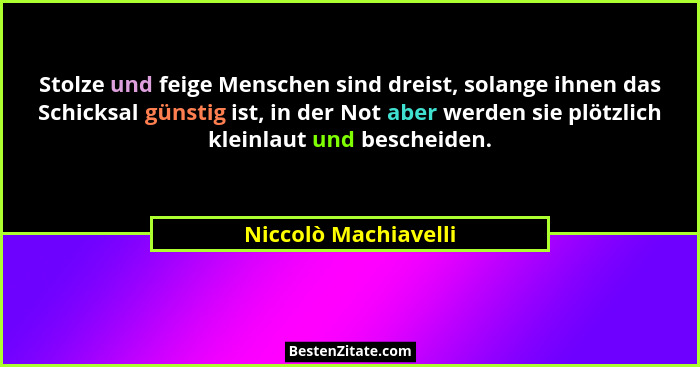 Stolze und feige Menschen sind dreist, solange ihnen das Schicksal günstig ist, in der Not aber werden sie plötzlich kleinlaut und bescheiden.