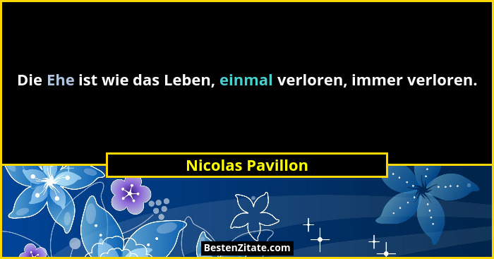 Die Ehe ist wie das Leben, einmal verloren, immer verloren.