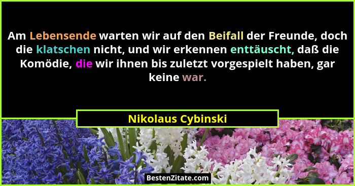 Am Lebensende warten wir auf den Beifall der Freunde, doch die klatschen nicht, und wir erkennen enttäuscht, daß die Komödie, die wir ihnen bis zuletzt vorgespielt haben, gar keine war.