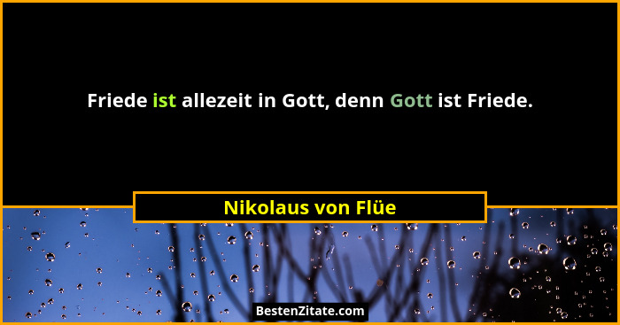 Friede ist allezeit in Gott, denn Gott ist Friede.