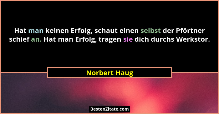 Hat man keinen Erfolg, schaut einen selbst der Pförtner schief an. Hat man Erfolg, tragen sie dich durchs Werkstor.