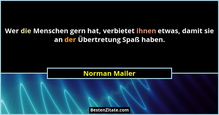 Wer die Menschen gern hat, verbietet ihnen etwas, damit sie an der Übertretung Spaß haben.