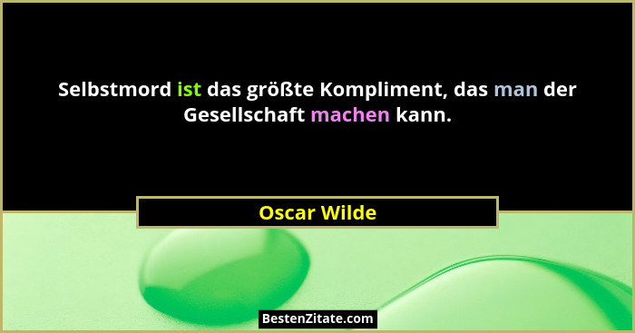 Selbstmord ist das größte Kompliment, das man der Gesellschaft machen kann.
