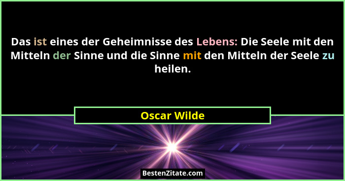 Das ist eines der Geheimnisse des Lebens: Die Seele mit den Mitteln der Sinne und die Sinne mit den Mitteln der Seele zu heilen.